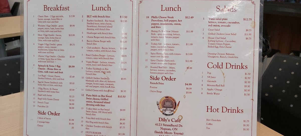 Welcome to Dily's Café, a delightful hidden gem nestled on the second floor of a Toyota dealership in Nepean, ON. This café effortlessly combines great food with friendly service, making it a must-visit for anyone in the area.